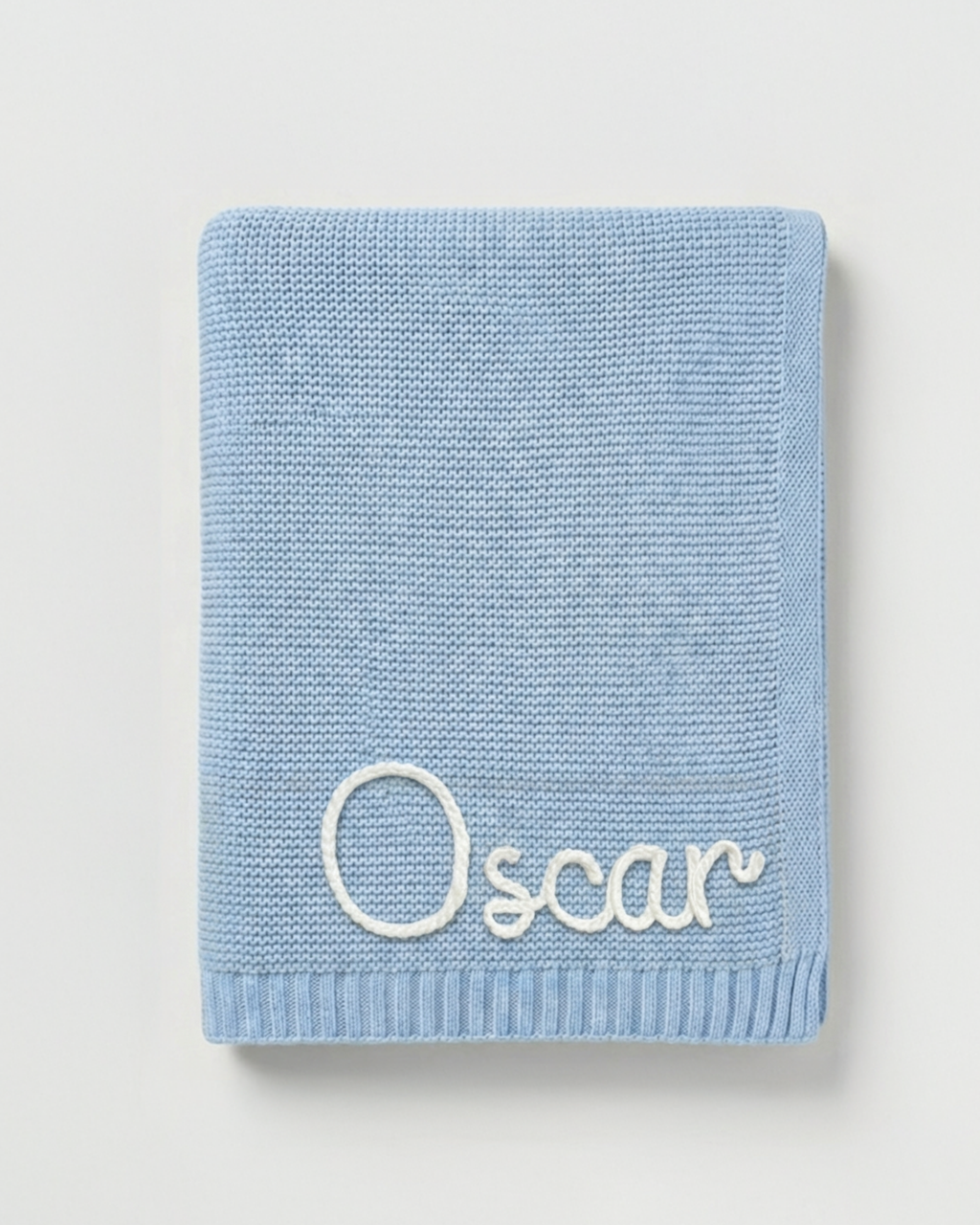 Unsere personalisierbaren Strickdecken sind weich, hochwertig und perfekt für kleine Wohlfühlmomente: ob im Kinderzimmer, im Kinderwagen oder unterwegs. Die feine Strickstruktur sorgt für eine gemütliche Optik, während die individuelle Personalisierung jede Decke zu einem ganz persönlichen Unikat macht. Ein liebevoller Begleiter, der Wärme, Geborgenheit und zeitloses Design vereint.